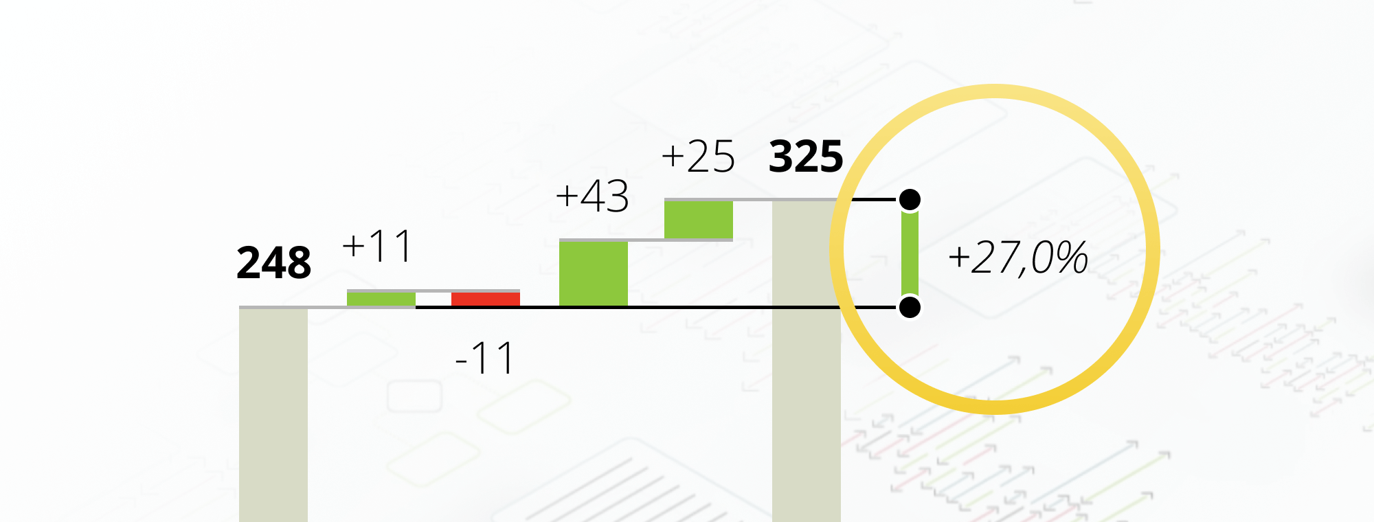 There are plenty of situations where displaying the differences will significantly improve the understanding of the data. Displaying year-over-year growth, presentations of plans for the next business year or displaying cumulative growth in waterfall charts are among the most obvious ones.