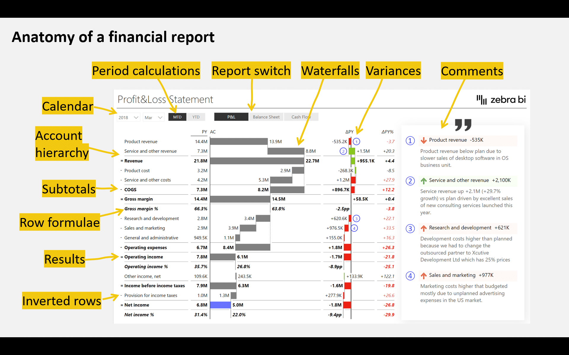 In this webinar, we will tackle all the challenges and provide tips&tricks to structure, create, and design understandable and actionable income statements with the help of Zebra BI visuals for Power BI.